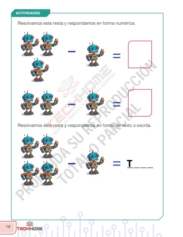 18ACTIVIDADESResolvamos esta resta y respondamos en forma num%u00e9rica. Resolvamos %u00e9sta resta y respondamos en forma de texto o escrita.=== TPROHIBIDA SU REPRODUCCI%u00d3N TOTAL O PARCIAL